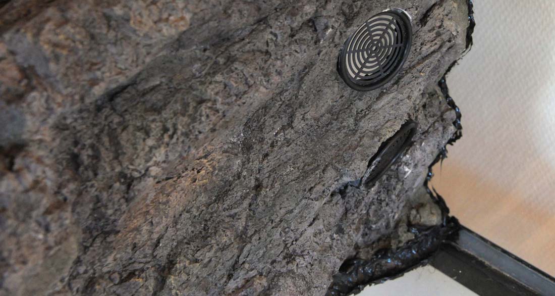 ![]() Outlets placed in the left side of the background, and inlets in the right. As evident in the left hand picture, I did manage to mount the background a little too low! The number of in- and outlets are determined by the number of pumps used and the throughput the filter is intended to have (in this case app. 3000 l/t.). The inlets MUST be covered by some sort of grids! The outlets are not strictly necessary, if there is room between the background and the lamp/glass cover to lead hoses over the top of, instead of through the background. Pushing the background into place, is a pretty hairy experience, if You haven`t done it before, and doubts may easily arise, if it is even possible for the thing to fit, since it gives off sounds that have a remarkable similarity to protest cries! With patience and controlled force (just remember that it might break if pushed too hard!) it does however, usually give in, provided that Your measuring is correct. Determining how far back it should be placed is easy; just push it up as close to the back glass as You can. This will (in this case) leave room for a 90L filter behind it. Take notice of how close the top of the background is to the top of the tank, and if the tilt of the background causes the top to be of uneven height, which will allow undesired water to spill over, into the filter. It may be necessary to put something under the background, to hold it in the right height, which is just below the top of the tank, making sure that no water spills over, at normal water level, but still allows for water to overflow in the event of an accidental blocking of the inlets! After all, it is better to have water spilling into the filter at wrong places, than having it spilled onto the floor... When the background is satisfactorily placed, it is glued to the bottom and the sides of the tank, creating a reasonably tight seal, so that water may only enter the filter at the inlets. The visible sealing can be camouflaged by pouring dry sand on the glue while it is still wet. Modules Two RockZolid modules are also installed. One will shield the outlets and the tubes emanating from them, from plain view, and one will make it possible to mount a Tunze 4025 stream pump in front of the background invisibly. Off course they must also add to the aesthetic value of the decor. The first purpose does not leave a lot of choices, as it is given that they must "hang" from the surface, where the installations are placed. Mounting them requires that they are also glued in place, as they would otherwise drop to the bottom or require support from e.g. rocks from below. Fortunately the manufacturer have thought of this possibility, and made a broad flange at all edges, which provide ample room for glue. They must however, still be kept in place mechanically, while the glue is hardening (app. 24 hours if You want to be absolutely sure). Clamps are the best tool here.